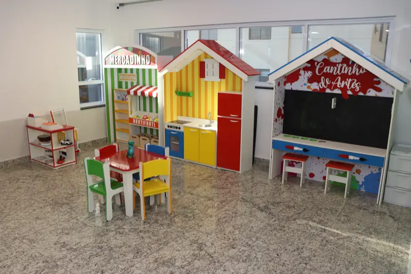- Ambiente especialmente equipado com balanços, redes, escorregadores, texturas